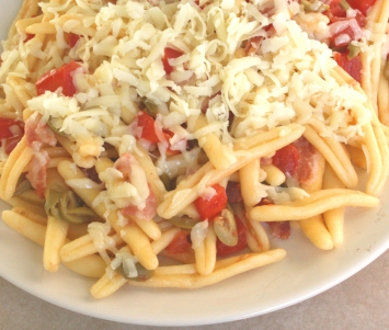 Nałożyć na talerz. Posypać po wierzchu mozzarellą startą na tarce o dużych oczkach.